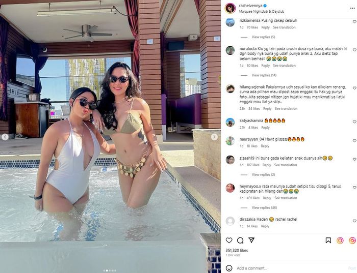 Unggahan Rachel Vennya saat pakai bikini ini menuai beragam komentat dari netizen di Instagram.