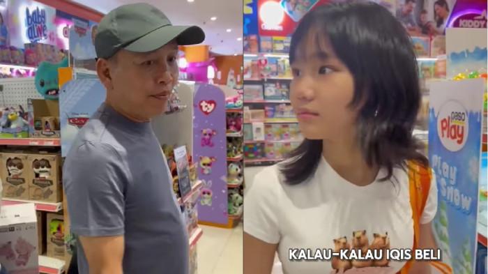 Sementara putri sang biduan itu tampak memegangi beberapa kotak mainan di tangannya hingga memicu reaksi dari Abdul Rozak.